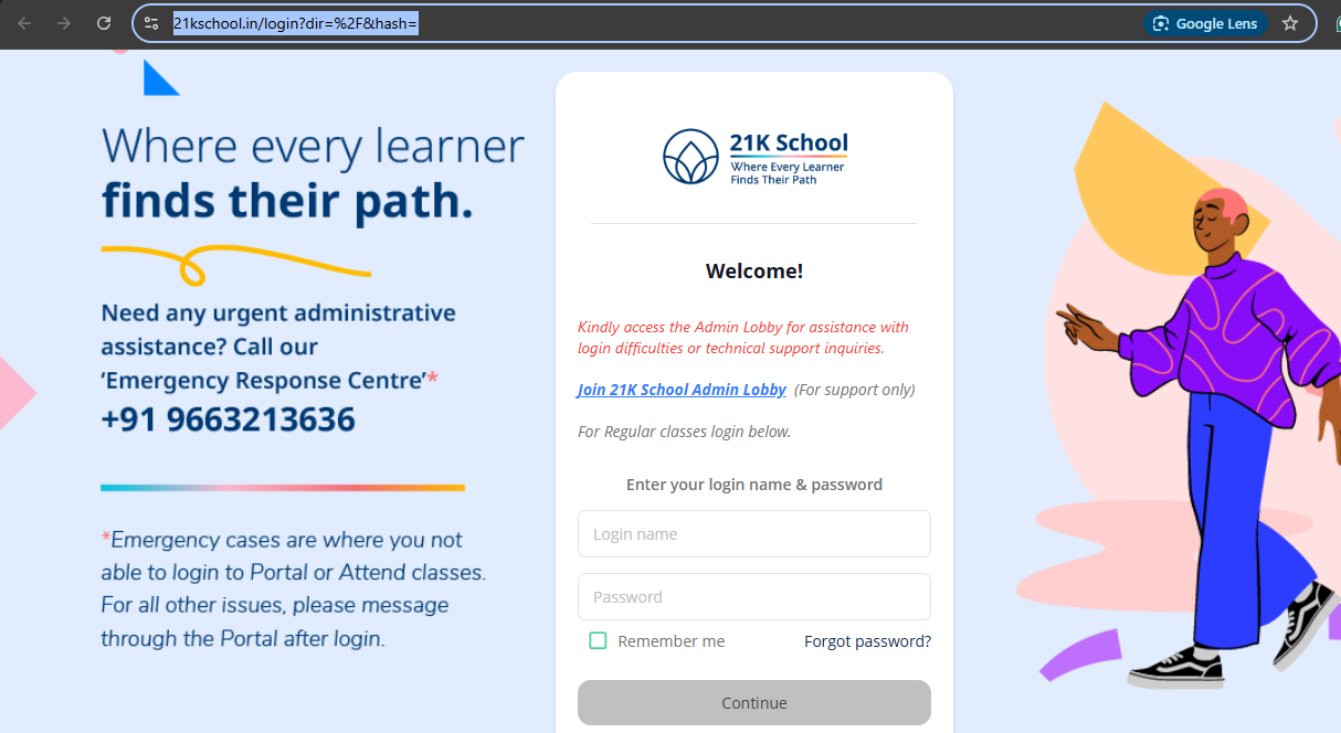 It helps you with support from our technical experts for any non-academic issues throughout the year. You can also call the emergency response center number +91 9663213636 for issues related to portal login during class hours.