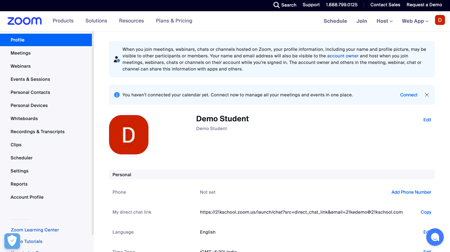 21K School focuses strictly on student attendance and makes it available for learners and parents for quick review. You can log in to the portal and then check the My Profile section on the dashboard.