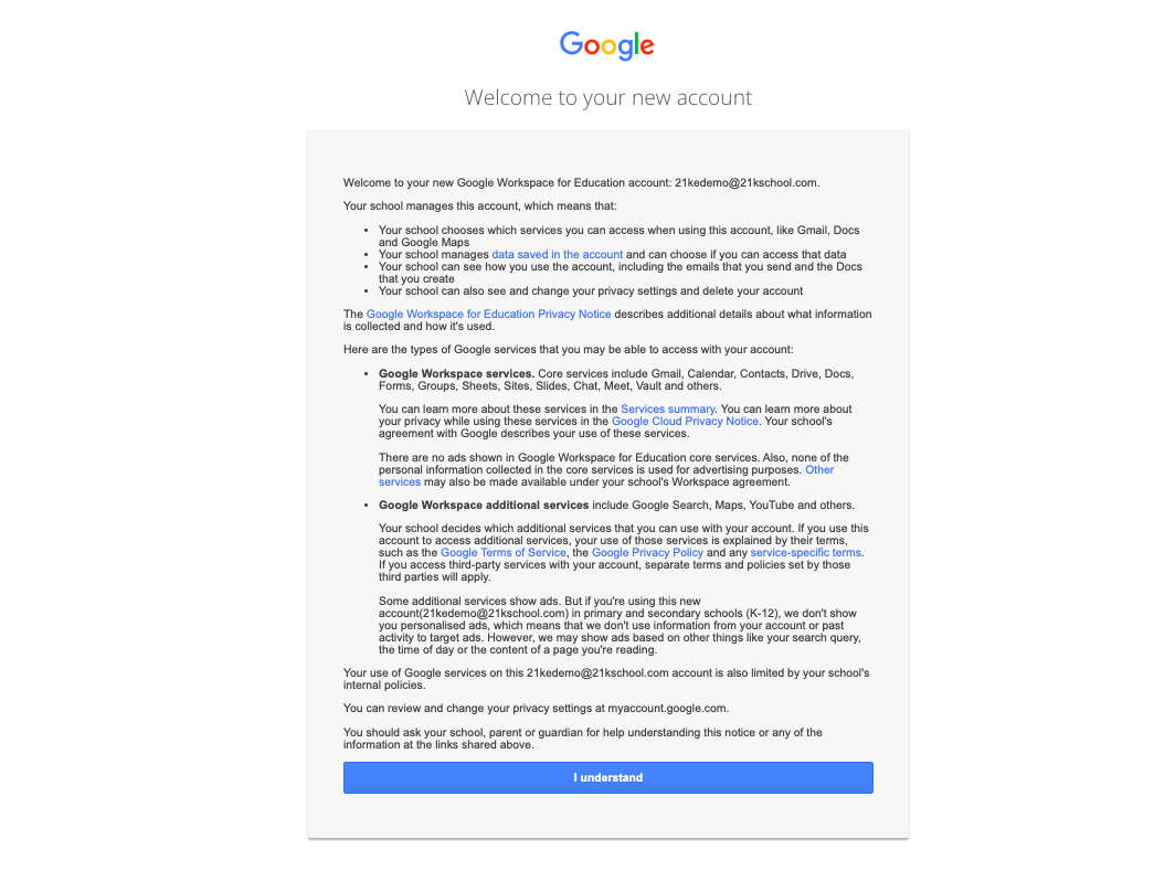 The school shares a dedicated Gmail account with the learner at the start of the onboarding process. Activating this Gmail account is straightforward, and it’s essential to keep this information handy for future use.