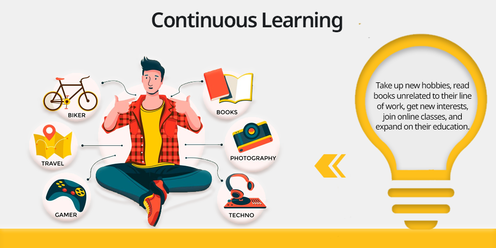 - Tip: Take up new hobbies, read books unrelated to their line of work, get new interests, join online classes, and expand on their education.
