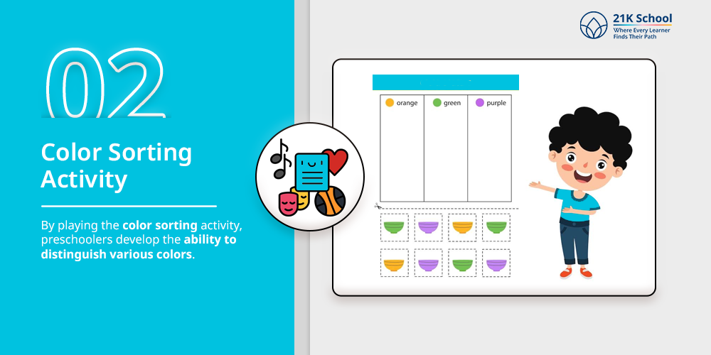 By playing the color sorting activity, preschoolers develop the ability to distinguish various colors.