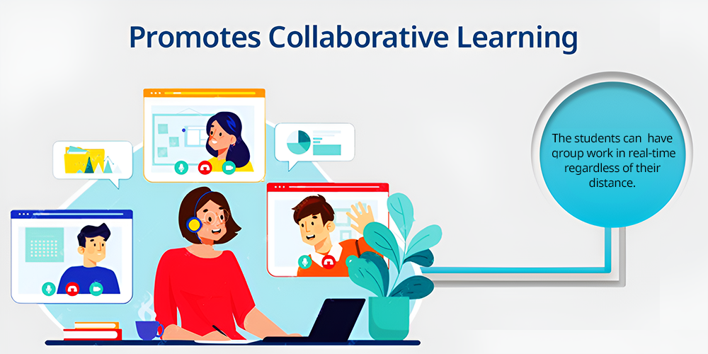 Using technologies like video conferencing, shared documents, and educational applications, the students can therefore have group work in real-time regardless of their distance.