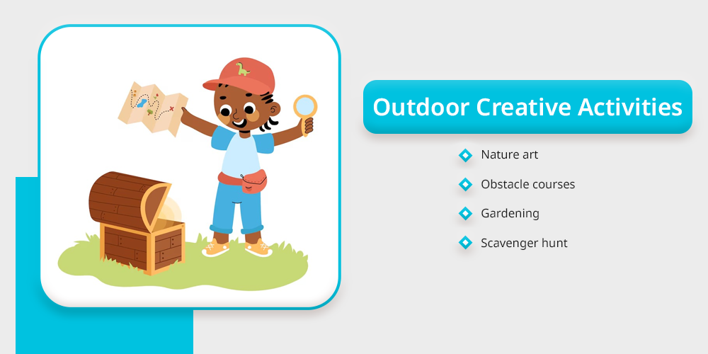 Outdoor creative activities are a fantastic way of combining creativity with fresh air and physical activity where kids are provided with rich Canvas for inspiration as they absorb and observe from their surroundings.