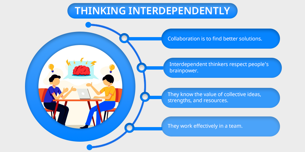 Interdependent thinkers have a sense of community. They contribute to a common goal, seek collegiality, and draw on the resources of others.