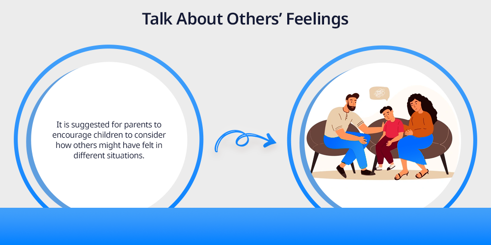 When parents talk about others’ feelings using real life examples or putting out characters from books and movies to ask questions, children tend to connect with it in a better way.