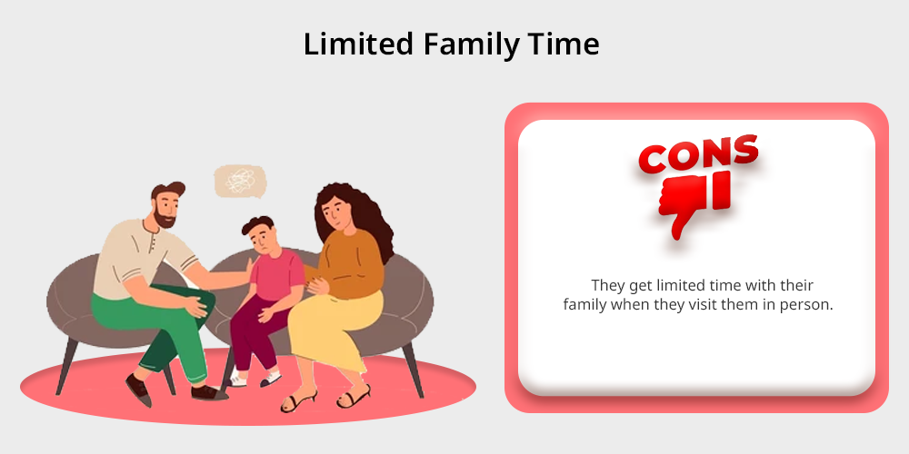 They get limited time with their family when they visit them in person. The idea behind this is to make kids independent and self-reliant but this often leads to homesickness and loneliness.