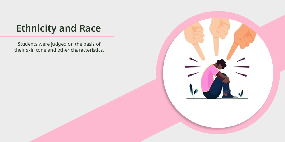 During racism, students were bullied by their peers in the form of teasing, manifesting, hitting, patting, and discriminating on the basis of their colour, and other criteria.