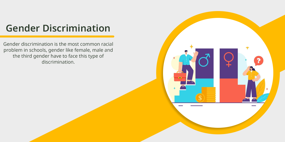 Gender discrimination is the most common racial problem in schools, gender like female, male and the third gender have to face this type of discrimination.
