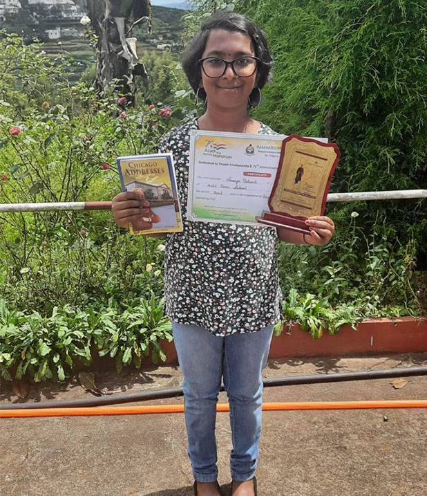 Ananya Vishwesh of grade 6 MC participated and represented 21K school in Azadi ka Amrut Mahotsav and 125th Anniversary of Swami Vivekananda's return to India - a cultural inter school event conducted by Ramakrishna Math - a recitation competition- Swami Vivekananda's Chicago Addresses and grabbed the 3rd place.